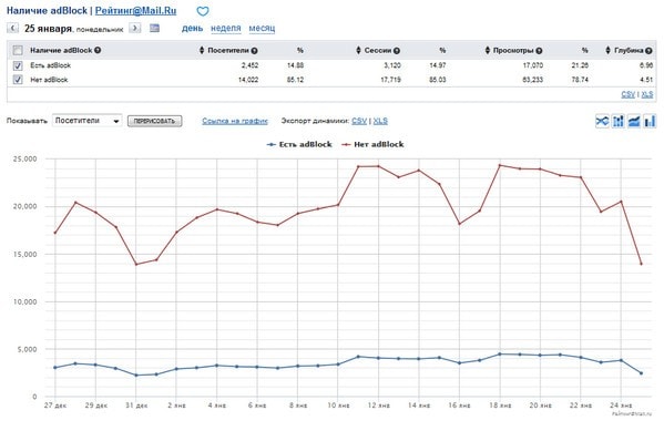Компания Mail.ru сообщила о появлении на «Рейтингах@Mail.ru» новой возможности – просмотра количества пользователей сайта, использующих блокировщик рекламы.
