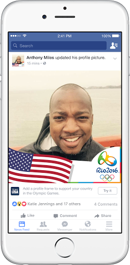 В преддверии летних Олимпийских игр 2016 Facebook представит 3 новые функции для пользователей. Нововведение будет запущено в ближайшие дни и поможет владельцам аккаунтов поддержать команды своих стран. Об этом сообщают представители пресс-службы компании.