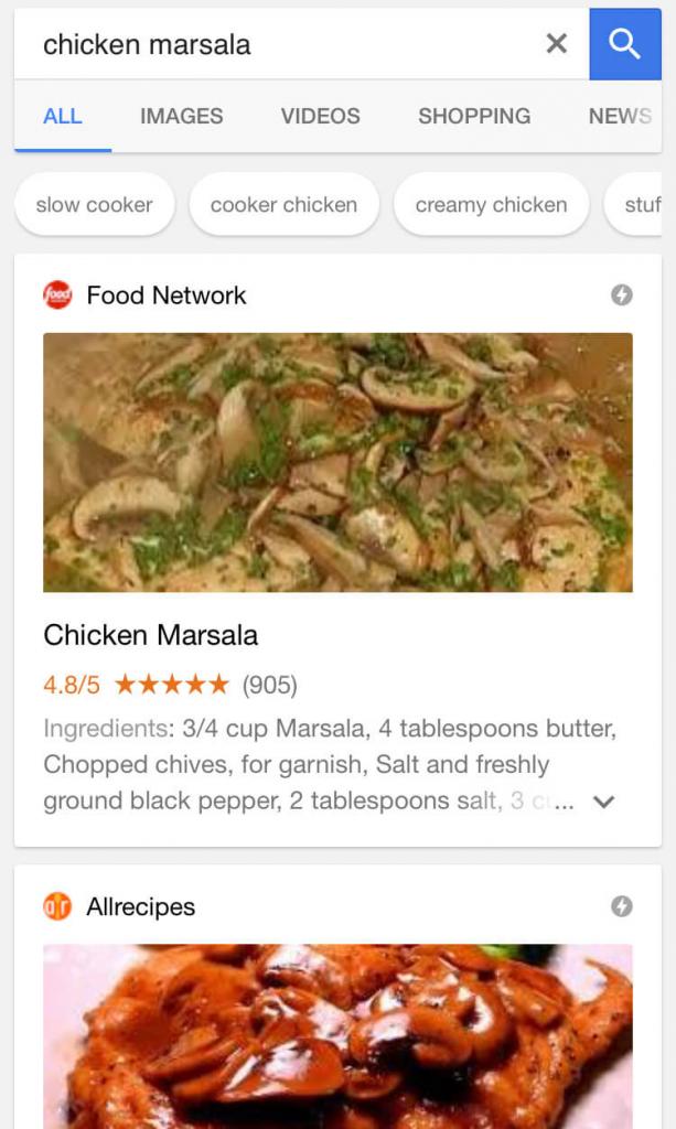 Англоязычные пользователи заметили, что Google запустил новое оформление для рецептов в мобильной выдаче.