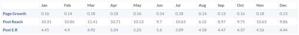 В таблице ниже отображены показатели роста аудитории, охвата и активности посетителей страниц брендов по месяцам: