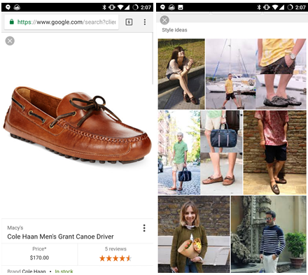 Теперь при поиске определённого товара Google покажет серию различных образов с его использованием. К примеру, если пользователь ищет солнцезащитные очки или определённую модель туфель, он сможет посмотреть, с какими вещами их можно сочетать. Таким образом, он сможет наметить для себя план дальнейших покупок.