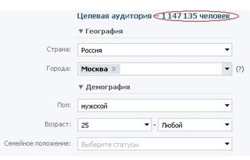 • Охват целевой аудитории – система показывает количество аккаунтов, имеющих параметры, указанные в таргетинге;