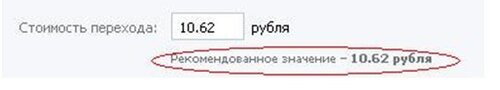 Рекомендованная стоимость перехода (CPC) 10.62 рубля