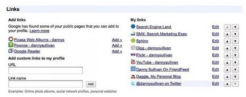 В третьем методе информация собирается вне поисковой системы Google. Добавляя ссылки, ведущие на другие социальные сети, пользователи создают собственный социальный круг. Вот как раньше выглядела панель «Ссылки» в Google Profiles: