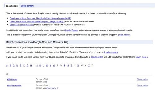 Свой социальный круг можно созерцать, перейдя по этой ссылке, но теперь он называется «социальные связи». Я не знаю, когда именно Google поменял это название, но подозреваю, что сделали они это относительно недавно, когда в интернете уже начали ходить слухи о том, что Google запускает новую социальную сеть - Социальные круги. Примечательно, что на странице технической поддержки, «социальные связи» все еще называются «социальным кругом» (название уже обновили – прим.перев.).