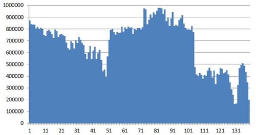 Распределение валидных id (сколько действительных из каждого миллиона)