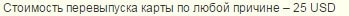 Стоимость перевыпуска карты по любой причине – 25 USD - так и останется?