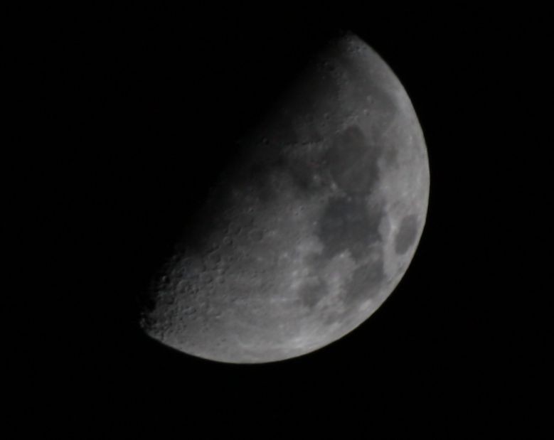 Луна как луна, половинка.. Никаких посторонних кругов. выходил, фоткал, но я не могу ночью фотографировать.. вышло немного хренова:)