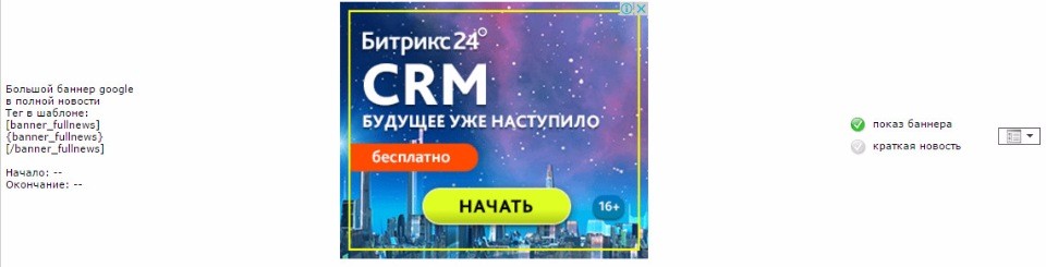 У DLE в админке есть раздел "Рекламные материалы". Там создаёшь рекламный блок, вставляшь рекламный код. Затем тег этого блока вставляешь в нужном месте в ШАБЛОНЕ сайта, main.tpl, fullstory.tpl (как вам правильно написали выше), в index.php вообще не стоит лезть.