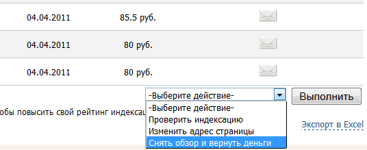 2) У вебмастера появилась функция возврата средств за размещенные обзоры. Теперь снять обзоры и вернуть деньги за них в случае необходимости проще простого. Причем для этого в целях безопасности требуется подтверждение операции по Вебмани кошельку.