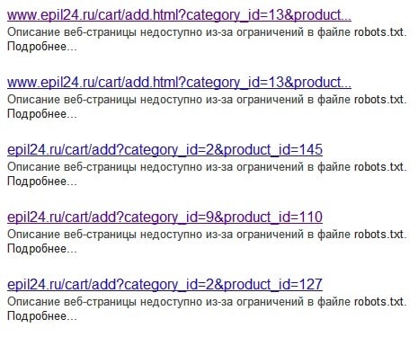 Вот, например, в роботс закрыта корзина (cart), но стоит в поиске вписать (site:site.ru/cart). Сразу формируется большой список страниц в таком стиле :