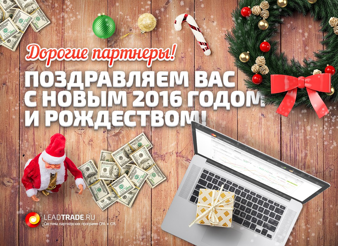 Поздравляем Вас с наступающим Новым годом! Желаем Вам здоровья, хорошо отдохнуть на каникулах, новых достижений и побед в области арбитража трафика и увеличить свой заработок в 10 раз - чему мы будем активно способствовать!