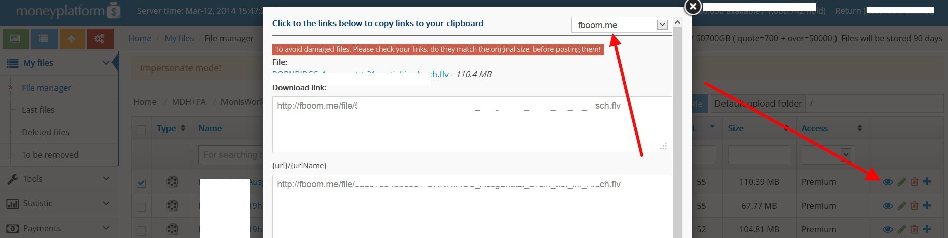 Всё управление файлами, генерация линков, выплаты будут осуществляться через MoneyPlatform.biz