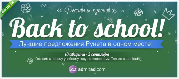 Сегодня, 18 августа, мы торжественно объявляем открытие Фестиваля купонов «Back to school» 2014 только для партнеров admitad!