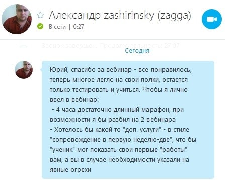 Александр (zagga) прошел индивидуальный вебинар.---------- Добавлено 13.05.2015 в 01:33 ----------Отзыв: