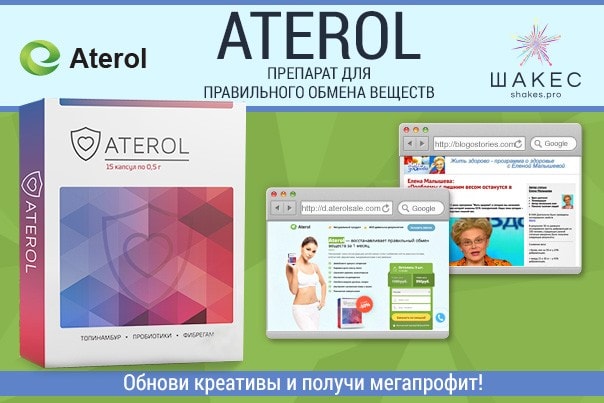 Mostpartner.comНОВАЯ СВЯЗКА - ATEROL Друзья, всем привет!Команда Шакеса всегда в поиске новых подходов и горячих креативов для вас Спешим сообщить о крутой связке на оффере, только с пылу с жару! Промо на эксклюзивный оффер Шакеса "Aterol - препарат нормализующий обмен веществ"!Тематика - похудение :)Лендинг http://d.aterolsale.com/ Прелендинг http://blogostories.com/ater/malush КЦ наготове ;) Выводит холестерин + нормализует обмен веществ + снижает вес = Aterol Скорее настраивайте РК в Шакес! ;)