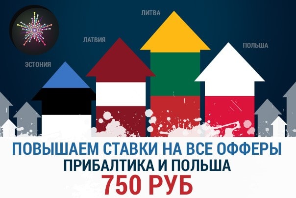 На все офферы с ГЕО Латвия, Литва, Эстония и Польша ставки выросли до 750 руб. По Европе ставки до 1000 руб!