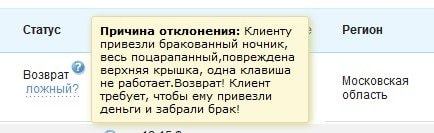 вот такая причина отменов заказа будет считатся "ваша вина?" Ведь заказам уже более месяца... а статус "отменён" получили на днях