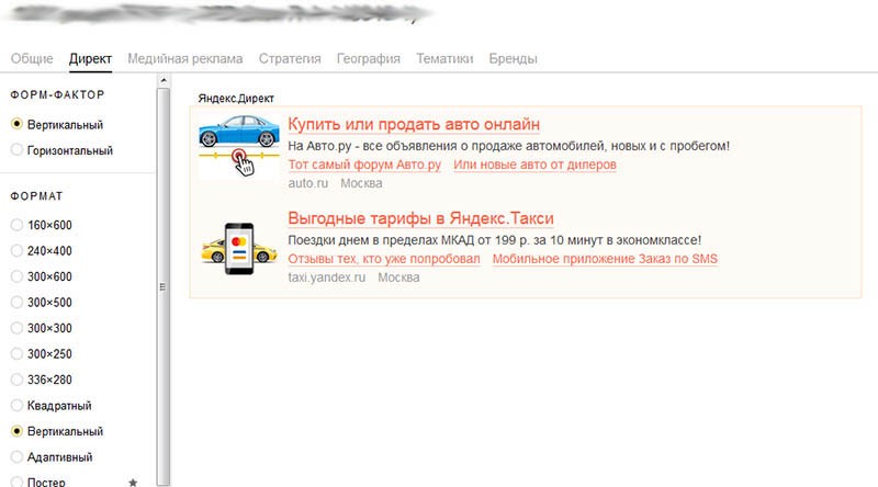 Вот так выглядит блок объявлений при его создании в интерфейсе РСЯ:
