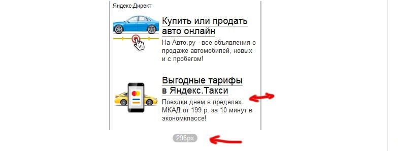 Уменьшаем еще немного до 296рх и объявления выстриваются друг над другом: