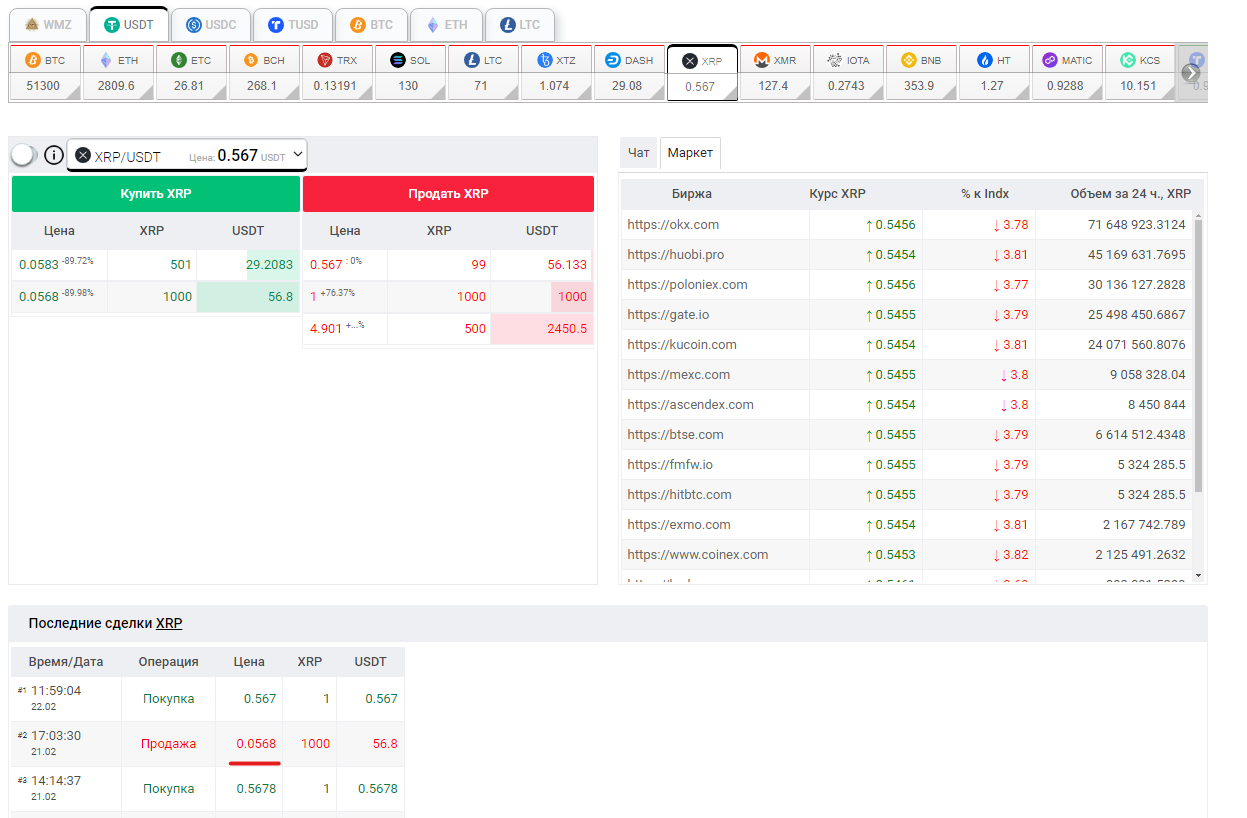 Вот единственное объяснение, чего на ВМ еще кто-то сидит, они ждут своего клиента. Какой-то бедолага вчера слил 1000 XRP по 0,056$ вместо 0,56$. Потерял 500 USDT на ровном месте. Видимо думал, что выгодно продал, ведь курс на тот момент везде был 0,545 $.