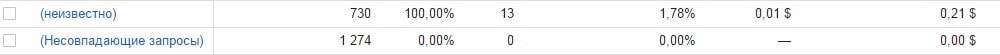 Вот как раз в этом моя проблема. Допустим, несовпадающие запросы это когда гугл не смог подобрать объявления. Тогда что такое "неизвестно"?