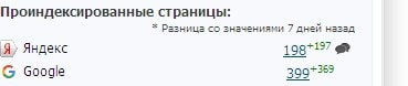 В индексе Яндекс 244 стр. / Гугл 448 стр.