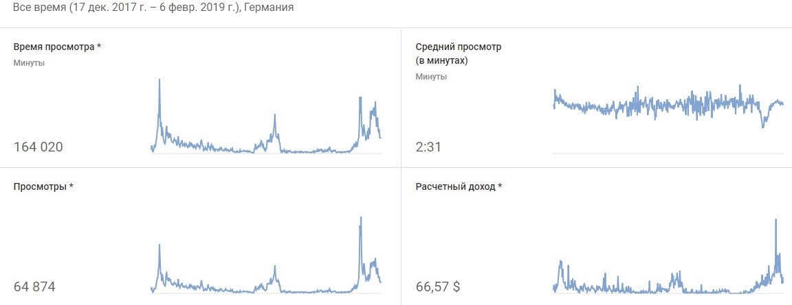 На серых каналах, в среднем 10к просмотров = 1к рублей, на авторских неограниченно ничем)