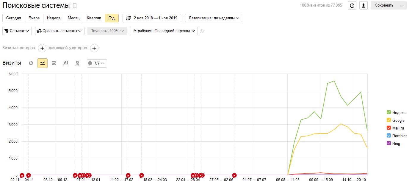 Результаты сайта строительной узконишевой тематики после оптимизации на основе нашего семантического ядра: