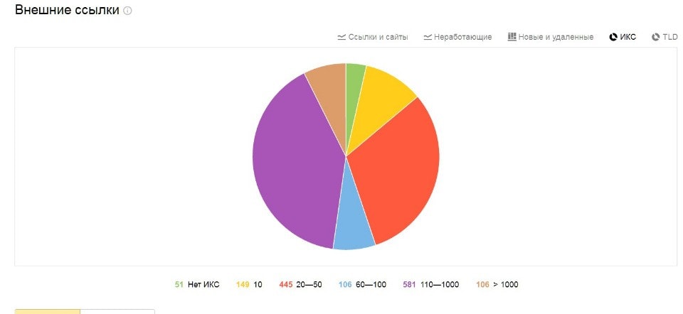 Вот пример сайта с кучей доноров с большим ИКСом, но у самого ИКС=10, ссылки бесполезны.