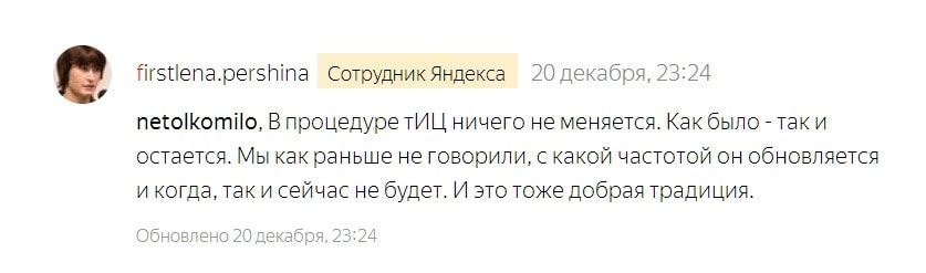 Яндексоиды пока уклоняются от вопроса об новых апдейтах тИЦа, типа мы раньше не говорили и сейчас не скажем. Так что до НГ может и последний-предпоследний апдейт тИЦ сделают....