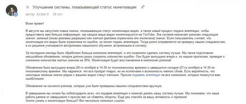 Я поступал по правилам: создал его в конце августа, достиг отметки в 10 к просмотров, подал заявку на монетизацию, успешно рассмотрели, получил пин-код, в тот же и первую выплату за сентябрь (550 $), за октябрь накапало 835 $, около 100 долларов за первые пять дней ноября и вот сегодня пришло "письмо небывалого счастья". Почему им изначально не пресечь данные действия, подключили монетизацию и тут на тебе. Жутко......