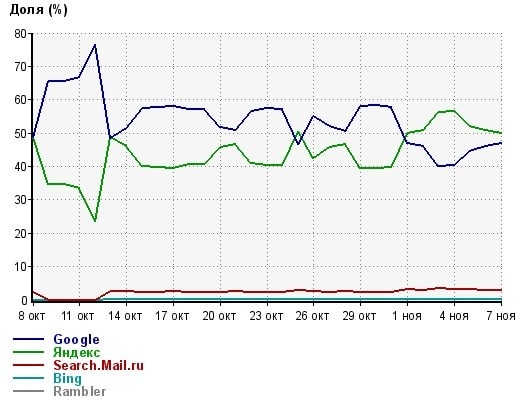В яндексе мньше одного процента птрафика было с начала, хотя сайт открыт уже год..хз почему так