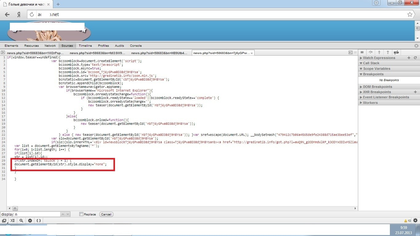 Наши блоки искусственно не показывались под воздействием внешних скриптов, а именно тизерной сетью Bodyclick.