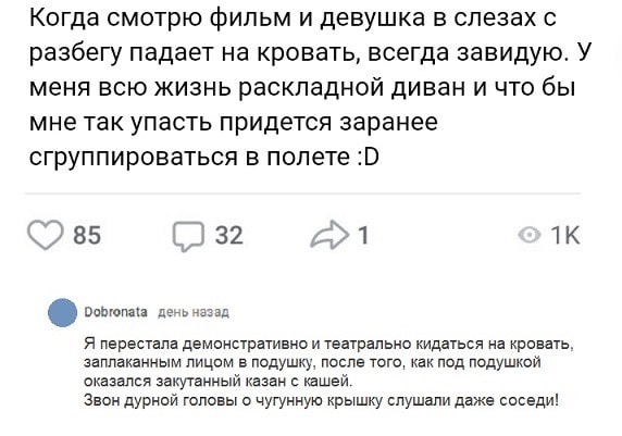 Хмм, а зачем хранить под подушкой закутанный казан с кашей? Или, пока она отсутствовала, кто-то пробрался и положил злосчастный казан под её подушку?😕