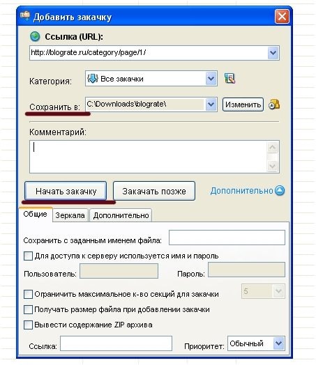 4. Выбираем, куда сохранить html-файлы и начинаем закачку:
