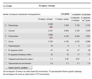 Да, у меня провалы начинаются с пятницы вечера и поднимается всё в воскресенье после 17.00. У меня ресурс некоммерческий, прибыли мне не приносит (только вкладываю), но по всем ключевым словами я в топе Гугла и Яндекса (выше меня только пару сайтов и Вики). Что касается 9 марта (не 8-го), то в этот день я с утра до вечера лазил внутри кода, вносил кучу исправлений почти до ночи, так что тут ничего удивительного. Сайт у меня на самописной CMS. Страшная как смерть внутри, но для меня очень удобная и простая.