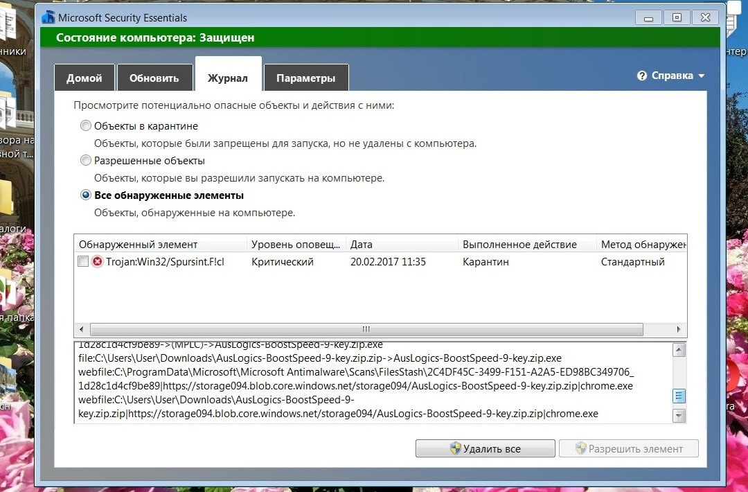 да и еще сейчас при скачивание загрузчика microsoft security essentials сразу его удаляет с пометкой Trojan:win32/spursint.F!cl