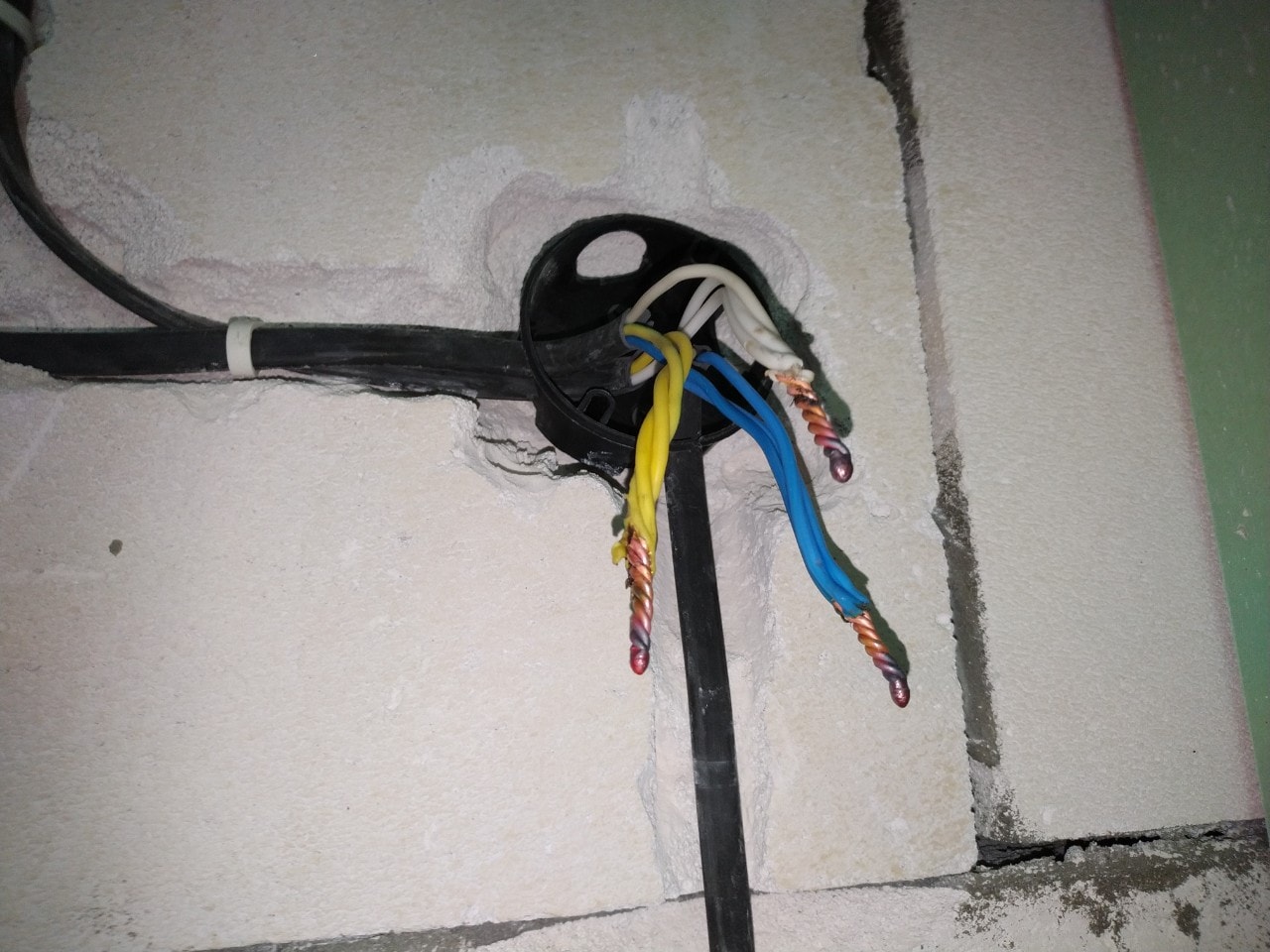 Алюминий с медью вы там сварили. :))) И концы безобразно длинные,забивать поленом в коробку придется. Указательный палец - мерка .И половина на скрутку.