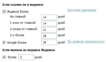 2) если да, то как настроить чтобы ссылка держалась пока она в индексе хотя бы одно ПС?