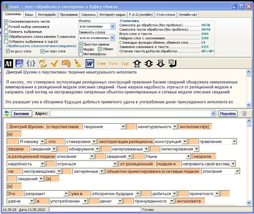просто в m1pluss настроек много, 4 базы, можно сделать текст полностью неузнаваем. но и полностью не читаем, можно сделать читаем, но и процент замен будет невысокий)