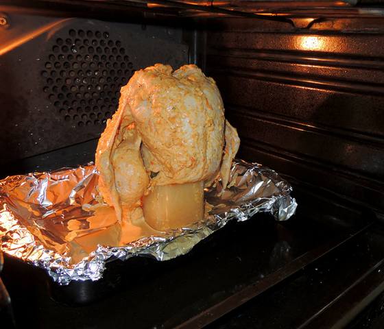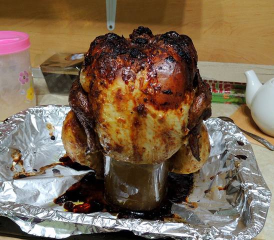 Курица запеченная на банке с рассолом