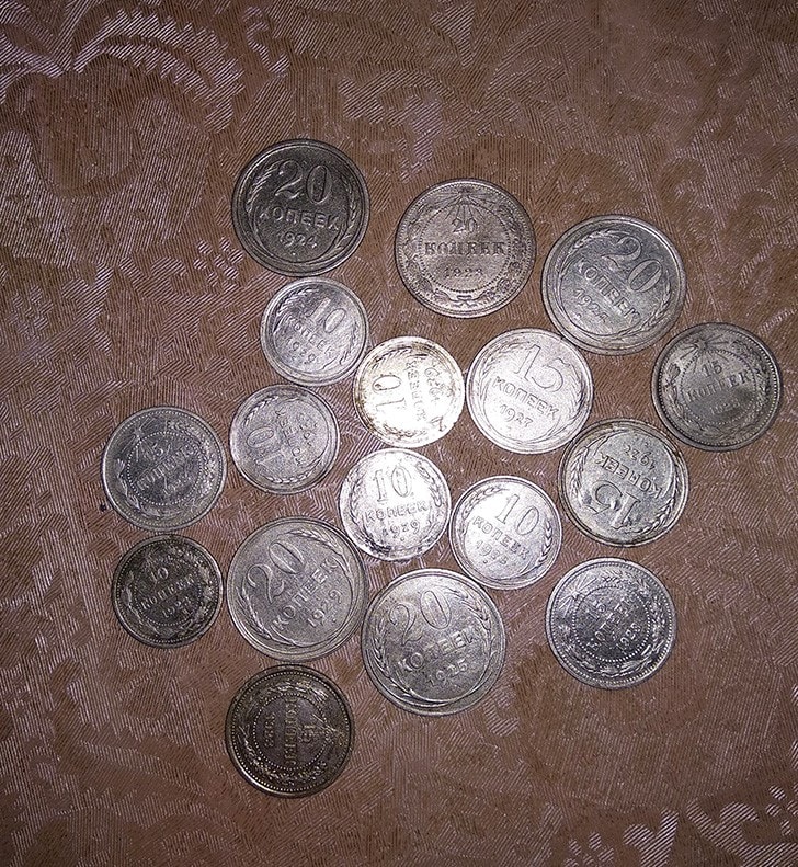 Всё может быть. Вот если бы знать, сколько это реально было в те года. Судя по монетам это конец 20х, может начало 30х. Всё серебро.---------- Добавлено 18.12.2018 в 17:52 ----------Итак бутылка водки в 1929 году стоила в районе 1 рубля. Может заначка от жены