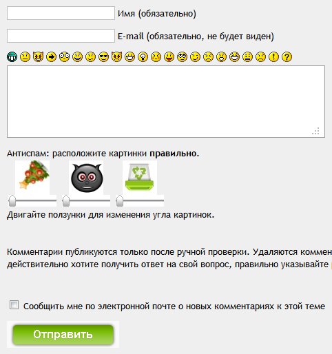 P.S. Я публикую не более 20% "человеческих" комментариев. Обычно отвечаю по e-mail, а капча нужна больше для порядка и чтобы не было соблазнов спамить любыми скриптами, т.к. сайт довольно раскручен.