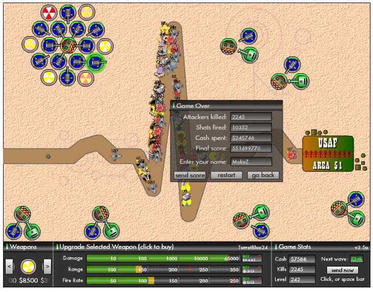 на самом деле игра реально ресурсов жрет как даже не знаю что. как эпоха империй 3-я блин. на моем кор 2 дуо с гигом оперативки после 240 уровня и скапливания кучи-кучи-кучи противников все это дело начинает подтормаживать. и комбы реально просто тупо начинают неправильно стрелять. ну и получается - один просочился, второй, третий. смотришь, а уже последний мчит к базе :)