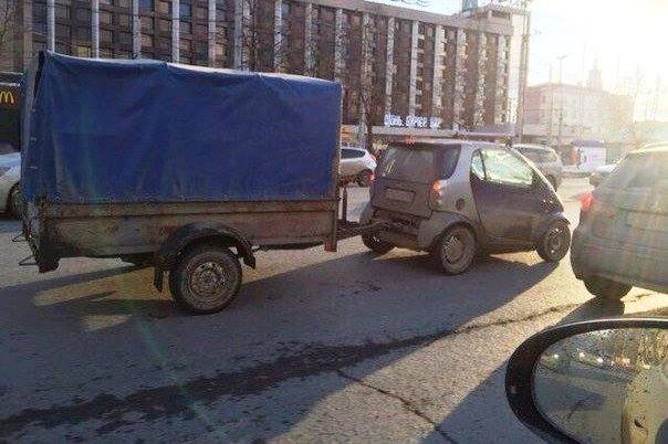 Это он гараж свой возит?) Такой маленький, зато какой смышлёный.