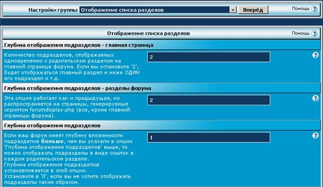 Данная опция, отображает на главной странице форума подразделы