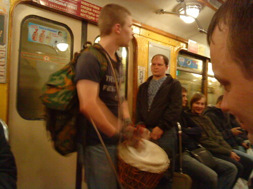 А у нас в метро всю дорогу цыгане, тьфу, тамтамщики сопровождали. (за 30 рублей с носу!)