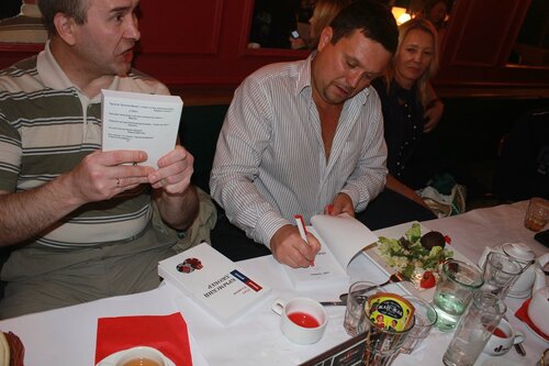 Будущий нобелевский лауреат по литературе подписывает свои шедевры.