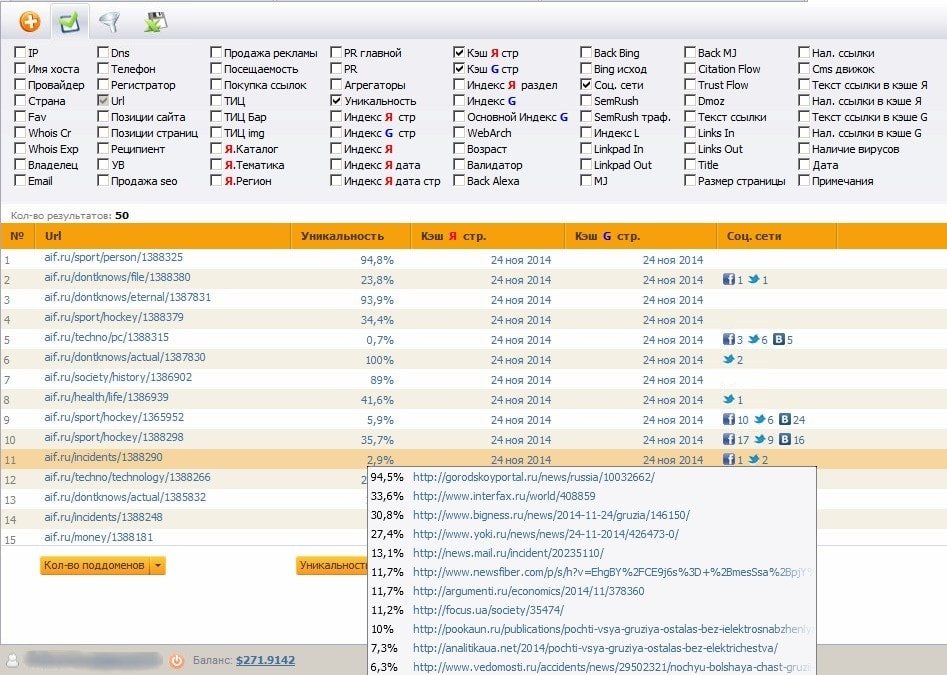 Собрать проиндексированные страницы из поиска Яндекса или Google может RDS bar http://www.recipdonor.com/bar